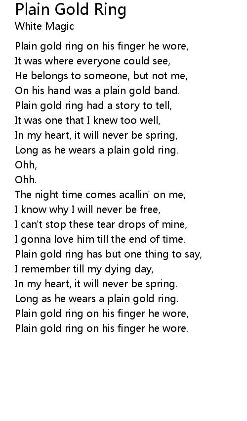 Plain gold ring on his finger he wore. |