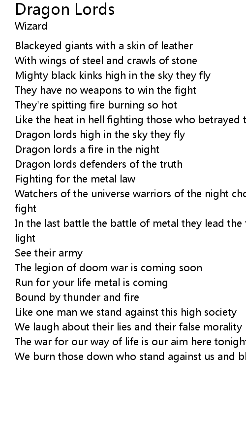 Dragon lords high in the sky they fly |