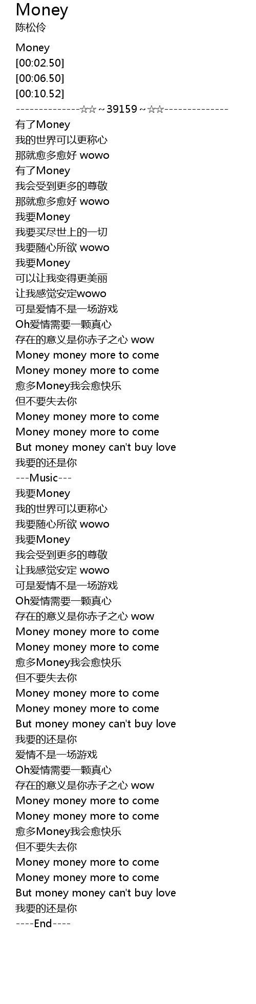 | [00:43.51] | 我要Money |