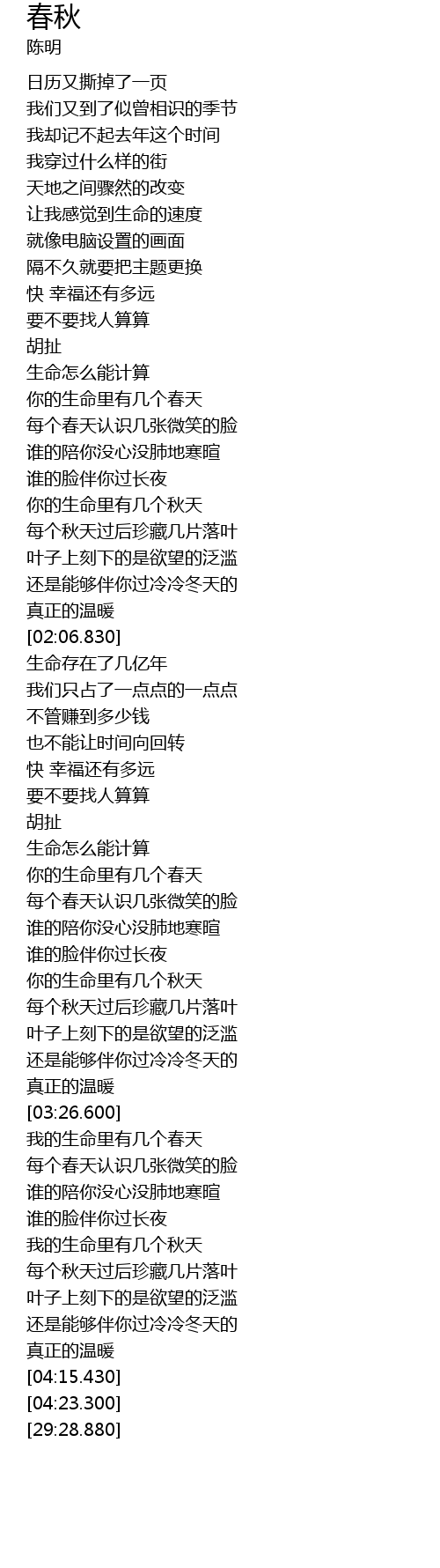 | [03:31.390] | wo de sheng ming li you ji ge chun tian |
