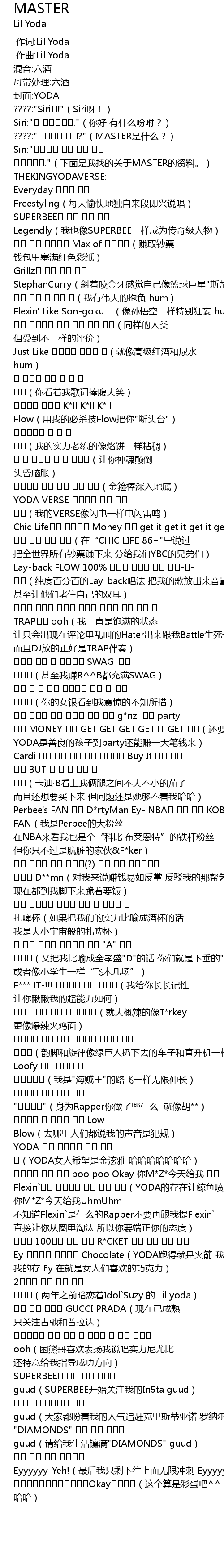 | [00:00.401] | 作词:Lil Yoda |