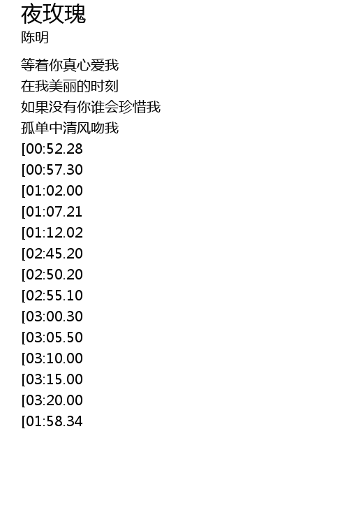 | [03:28.25][02:45.20][01:16.00] | 我是夜色中的玫瑰 |