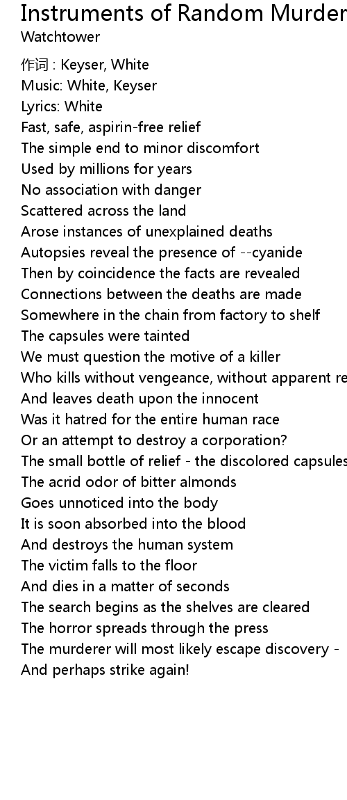 | 歌曲 | Instruments of Random Murder |