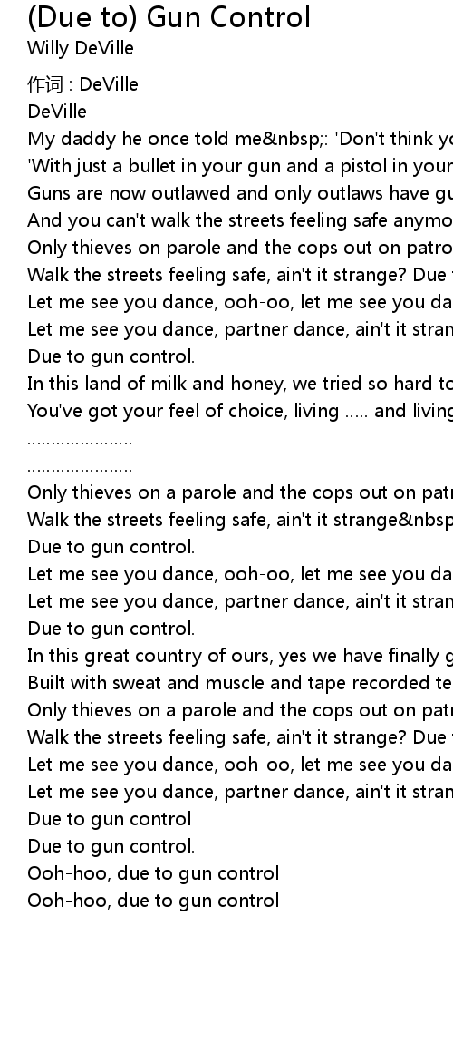 | Walk the streets feeling safe, ain't it strange? Due to gun control. | |
