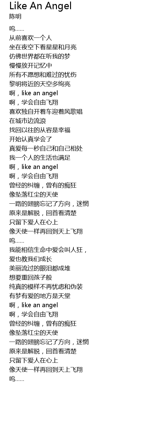 | [02:07.500] | 像天使一样再回到天上飞翔 |