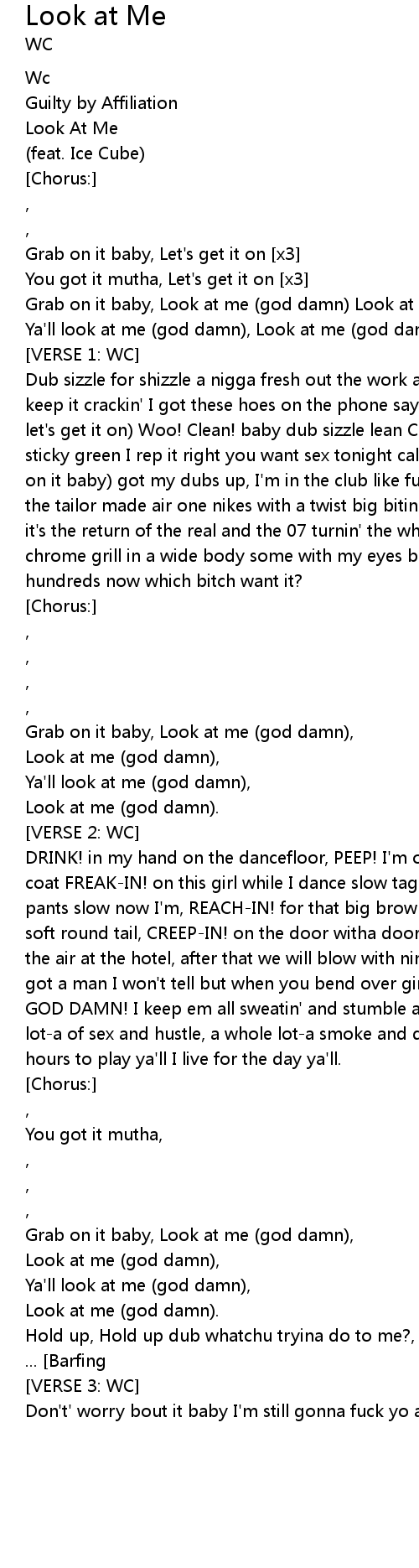 Grab on it baby, Look at me (god damn) Look at me (god damn) |