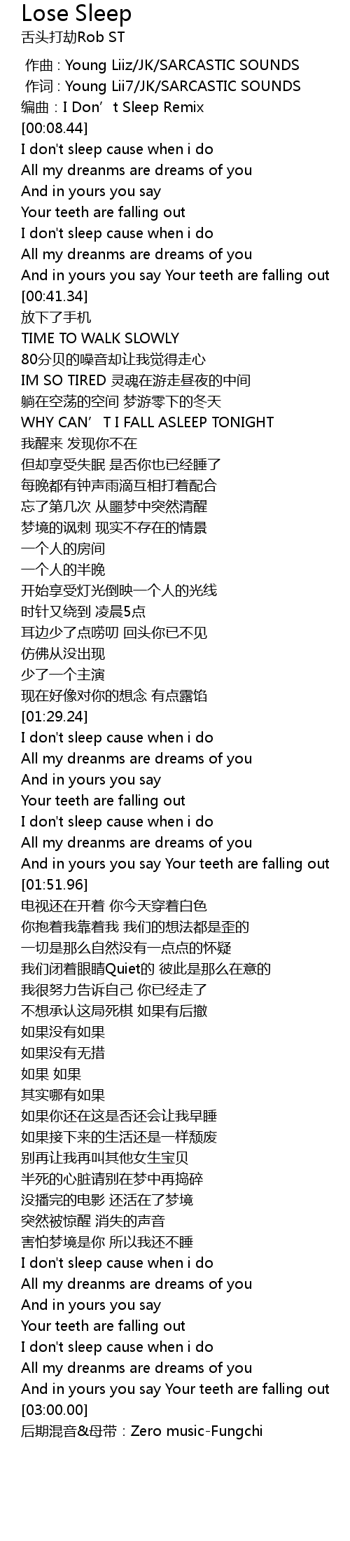 | [00:06.48] | biān qǔ: I Don' t Sleep Remix |
