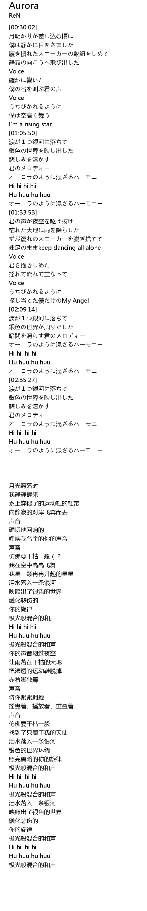 | [01:19.22] | オーロラのように混ざるハーモニー |