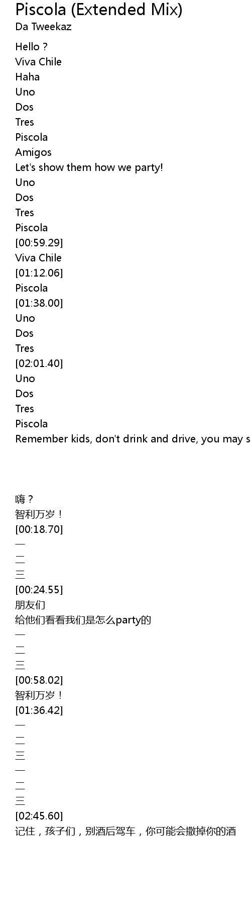 | [02:49.00] | 记住,孩子们,别酒后驾车,你可能会撒掉你的酒 |