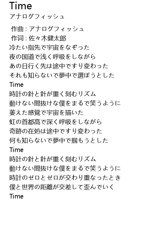 | [00:00.000] | 作曲 : アナログフィッシュ |