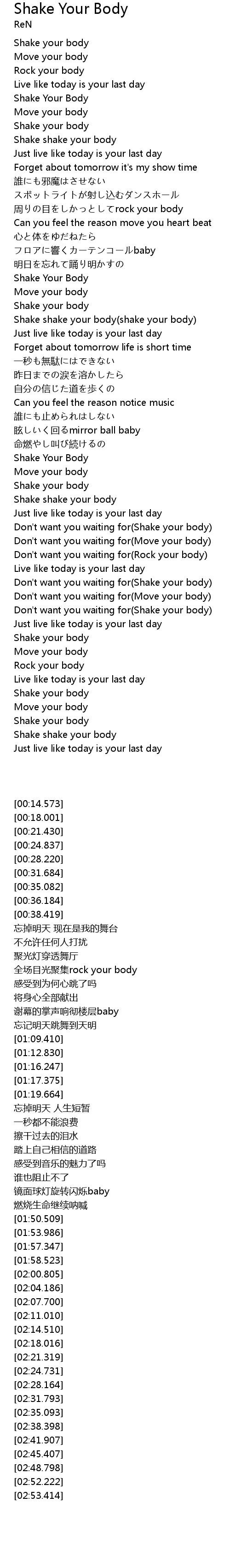 | [02:24.731] | Don't want you waiting for(Shake your body) |