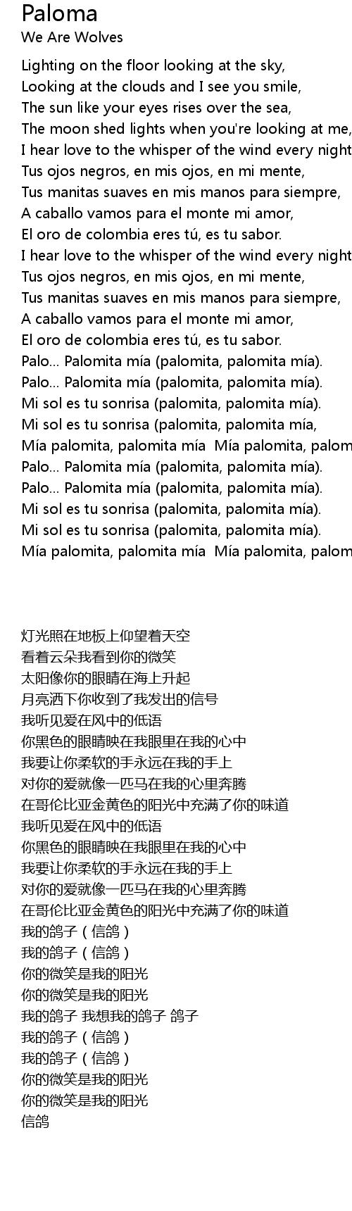 | [01:56.610] | Palo... Palomita mía (palomita, palomita mía). |