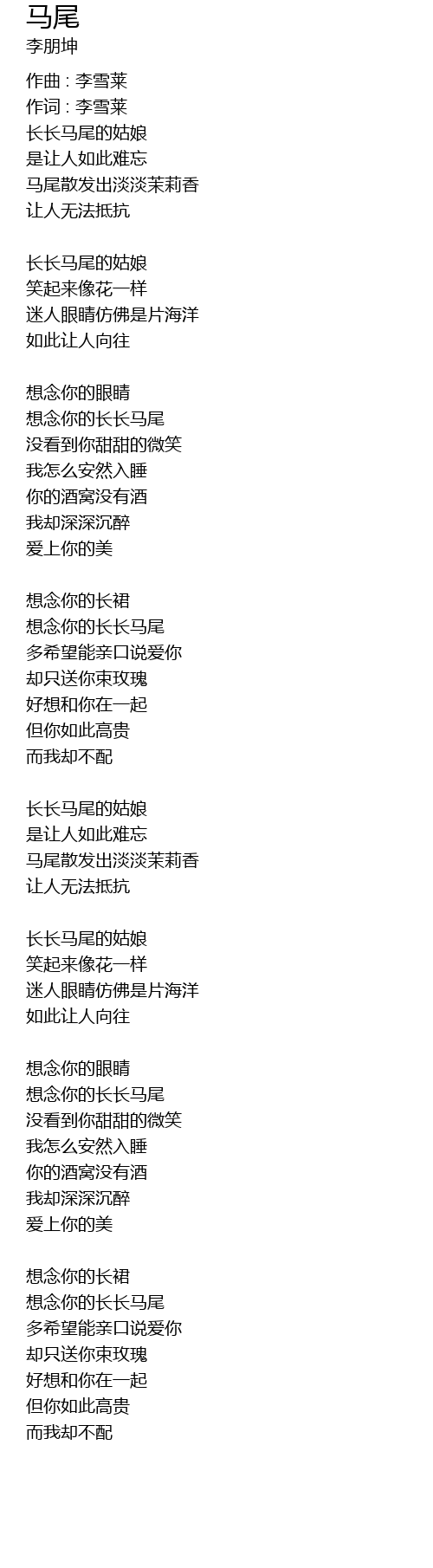 | 作词 : 李雪莱 | |