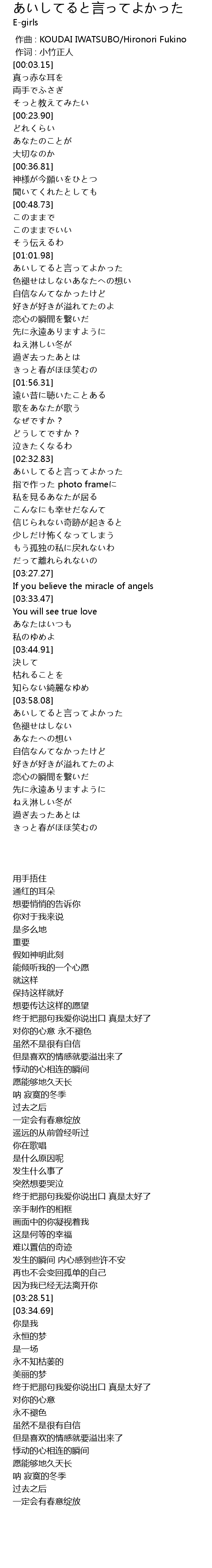| [04:03.36] | あいしてると言ってよかった |