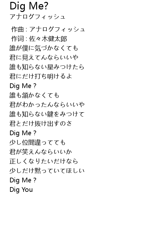 | [00:49.50] | Dig Me? |
