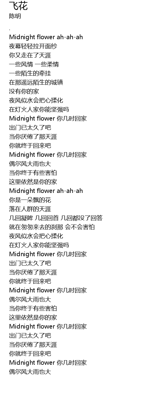 | [03:24.37] | Midnight flower nǐ jǐ shí huí jiā |