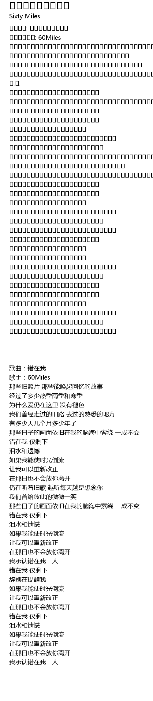 | [00:08.00] | 歌手:60Miles |