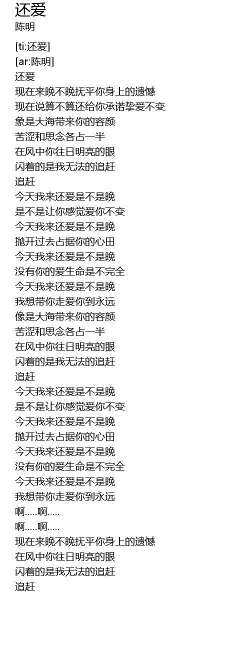 | [03:38.357] | 今天我来还爱是不是晚 |