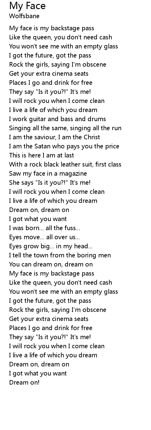 | My face is my backstage pass | |