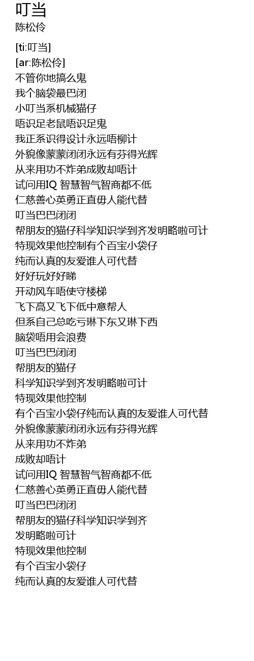 | [01:01.245] | 叮当巴巴闭闭 |