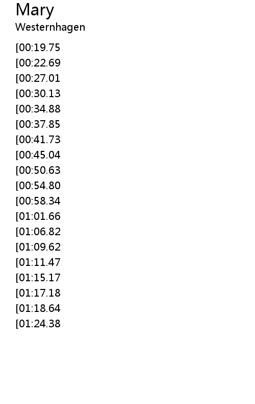 | [02:36.42][01:15.17] | 玛莉 玛莉 |