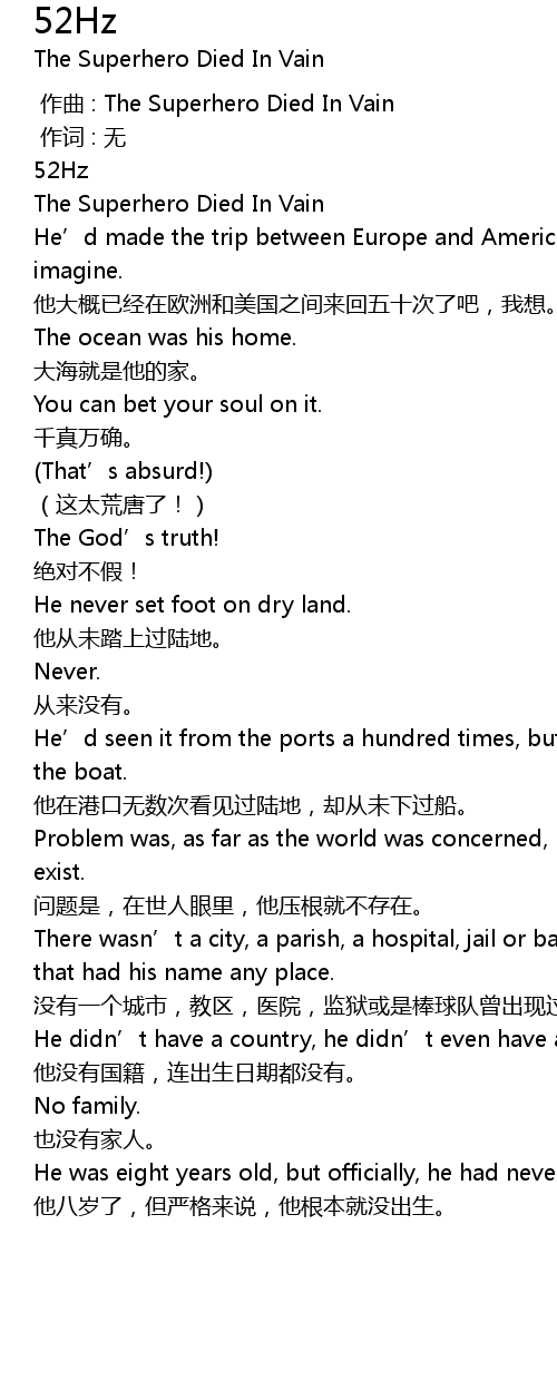 | [00:03.000] | The Superhero Died In Vain |