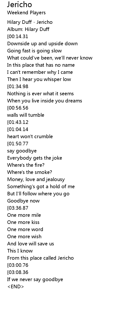 | [00:00.00] | Hilary Duff Jericho |