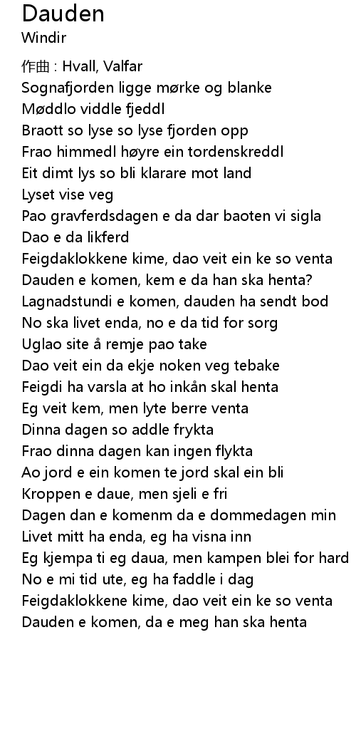 | Feigdaklokkene kime, dao veit ein ke so venta | |