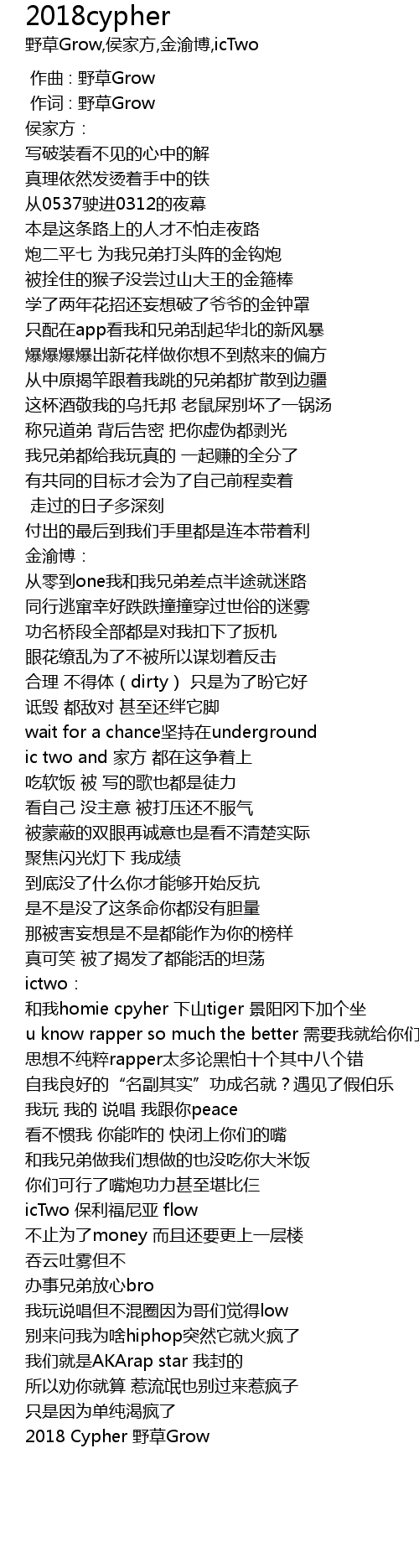 | [03:08.496] | 2018 Cypher 野草Grow |
