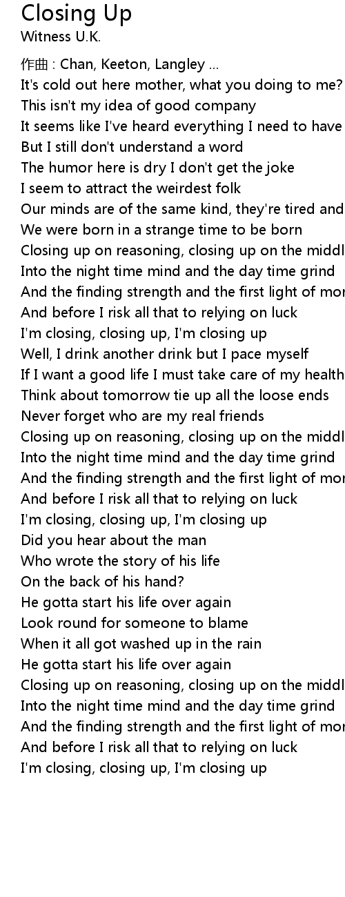 | 歌曲 | Closing Up |