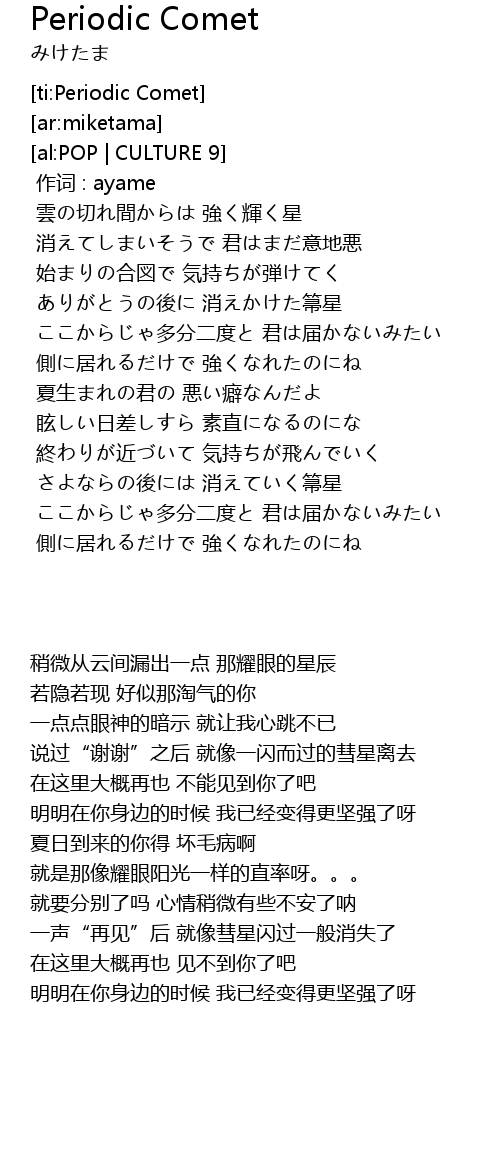 | [03:31.866] | さよならの後には 消えていく箒星 |