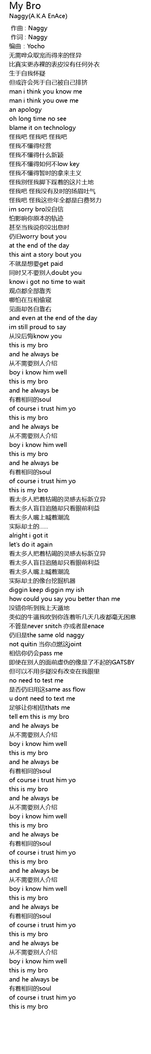 | 歌曲 | My Bro |