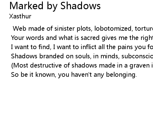 | Shadows branded on souls, in minds, subconscious revealed, has nowhere to hide | |