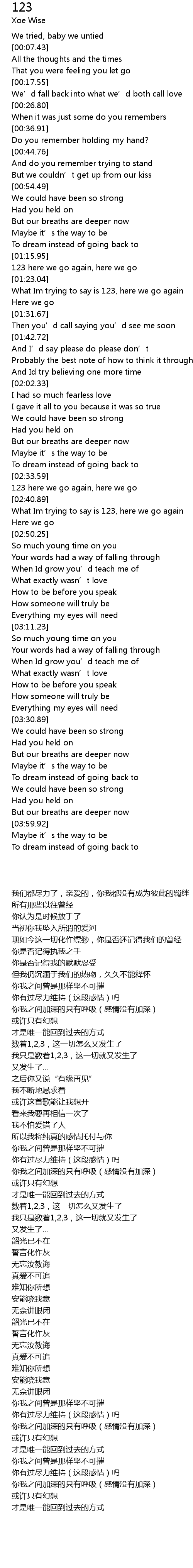 | [02:43.58] | What Im trying to say is 123, here we go again |