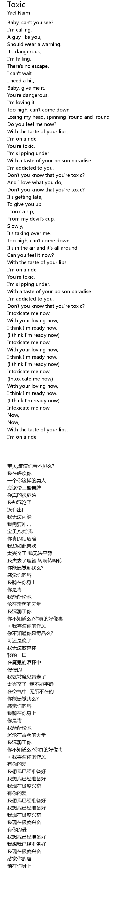 | [02:29.450] | Don' t you know that you' re toxic? |