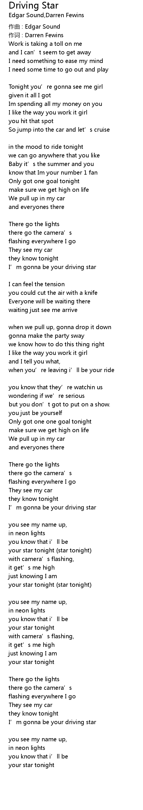 | I' m gonna be your driving star | |
