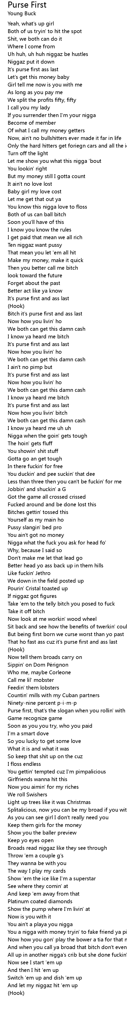 | That ho fast ass cuz it's purse first and ass last | |
