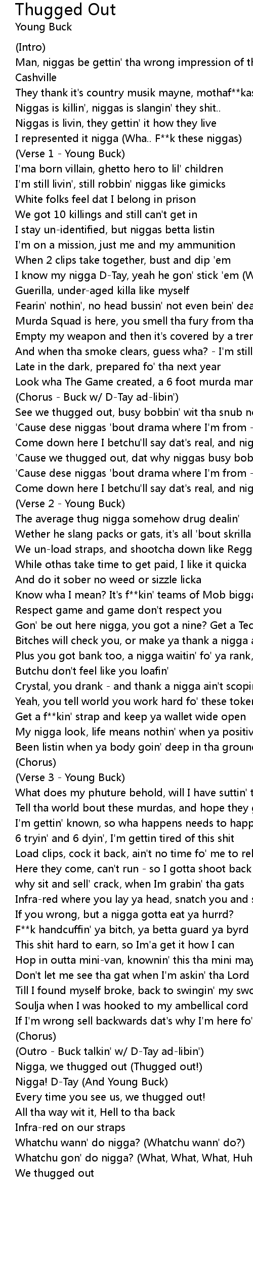 'Cause we thugged out, dat why niggas busy bobbin' wit tha snub nose out