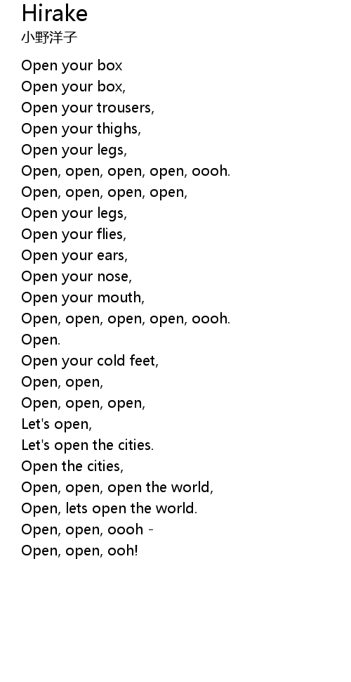 | Open, open, open, | |
