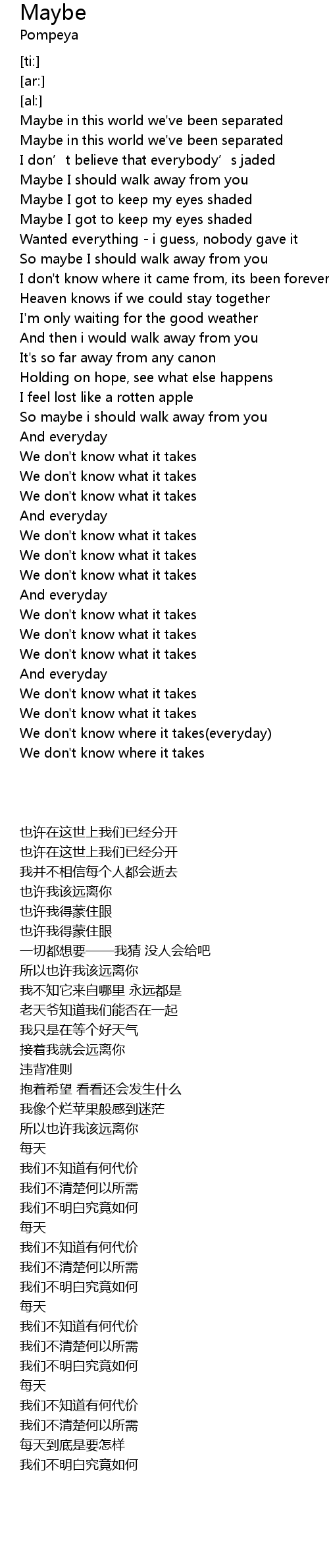| [02:12.36] | We don' t know what it takes |