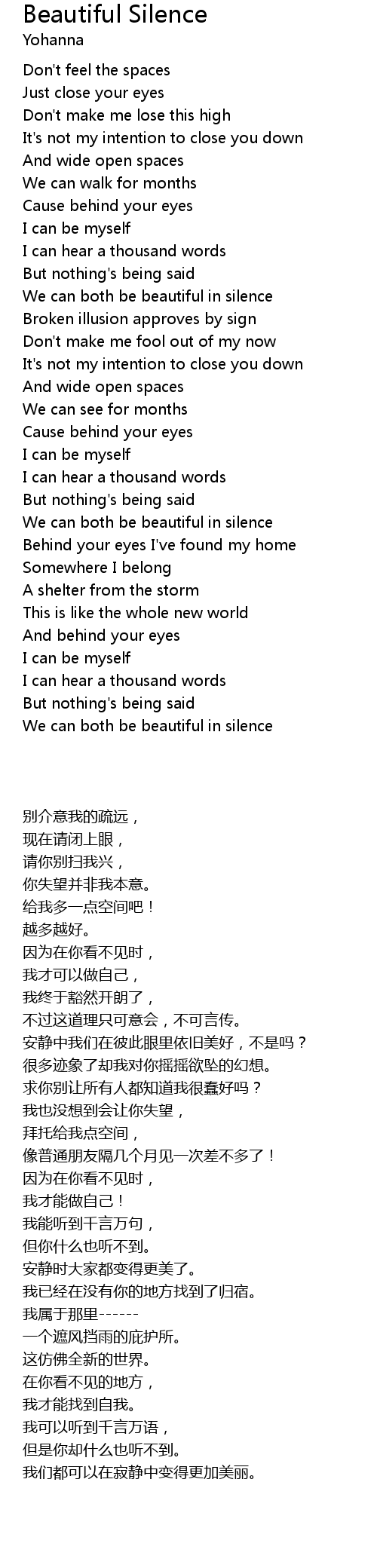 We can both be beautiful in silence |