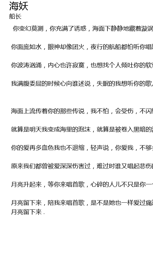 | nǐ biàn huàn mò cè, nǐ chōng mǎn le yòu huò, hǎi miàn xià jìng jìng dì cáng zhe xuán wō. | |