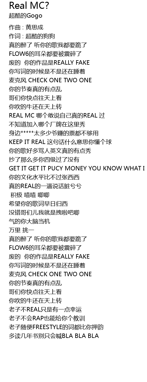 | REAL MC něi gè gǎn shuō zì jǐ zhēn de REAL guò | |