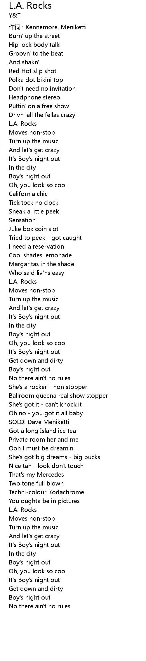 | 歌曲 | L.A. Rocks |