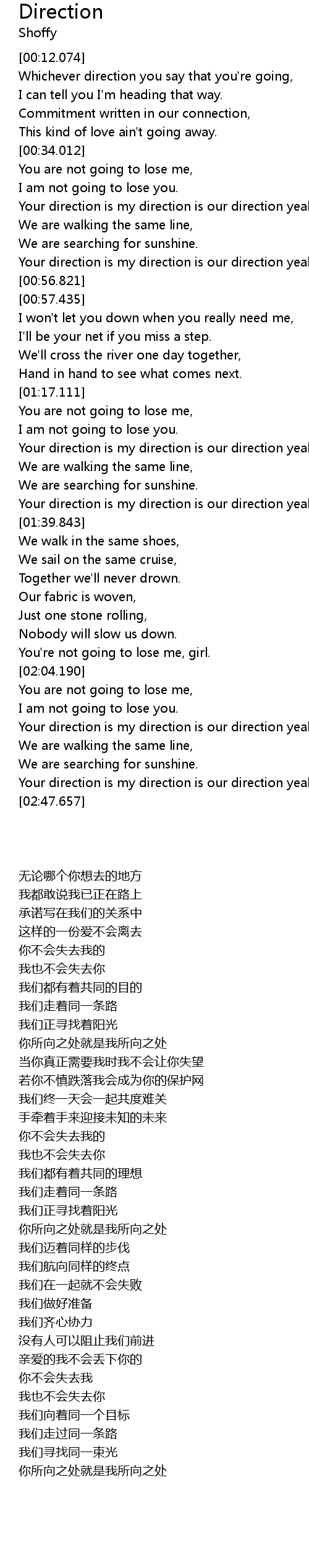 Your direction is my direction is our direction yeah. |