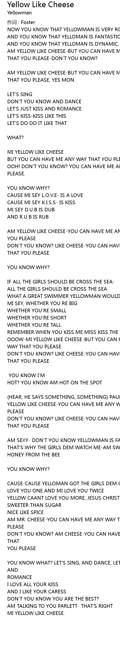 | YELLOW LIKE CHEESEYOU CAN HAVE ME ANY WAY THAT YOU | |
