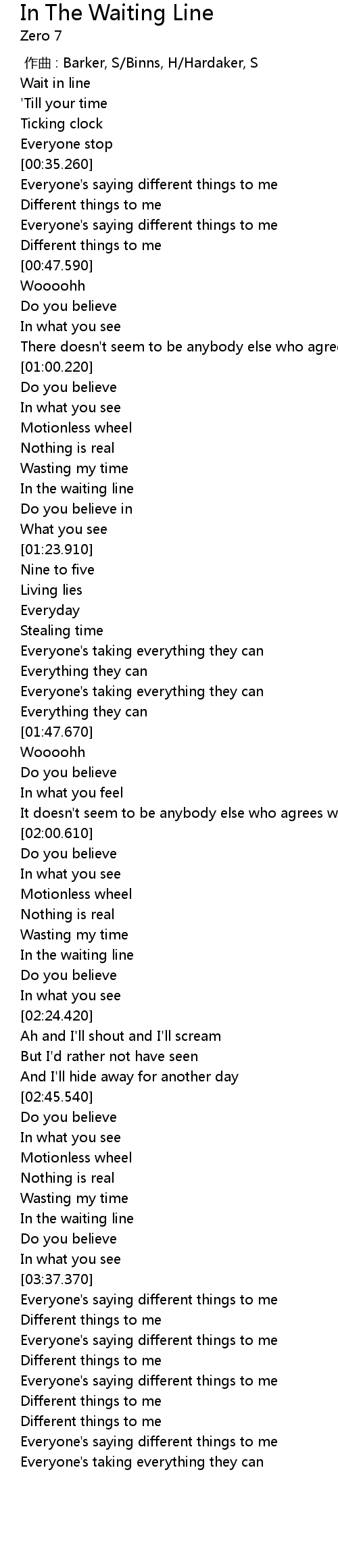 | [00:24.510] | Wait in line |