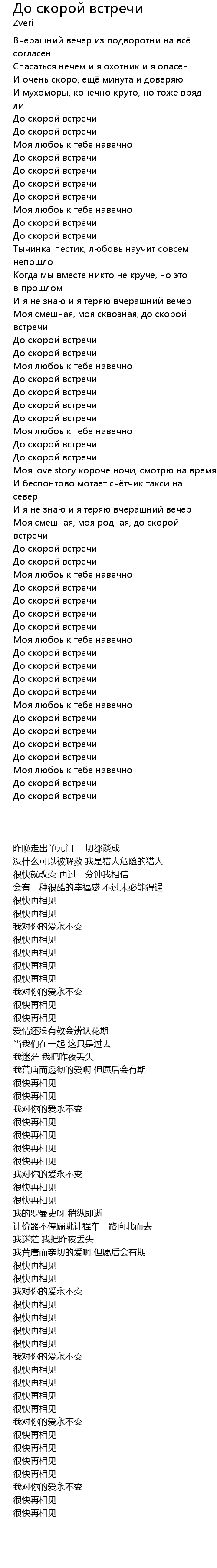 | 歌曲 | До скорой встречи |