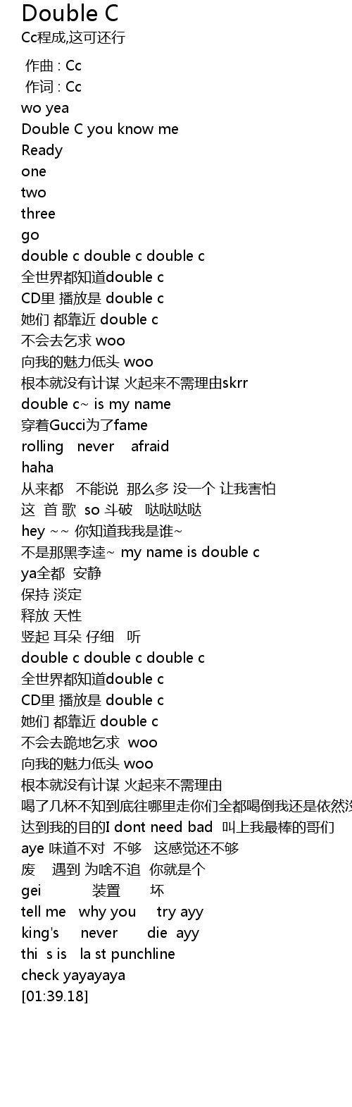 | [00:15.28] | double c double c double c |