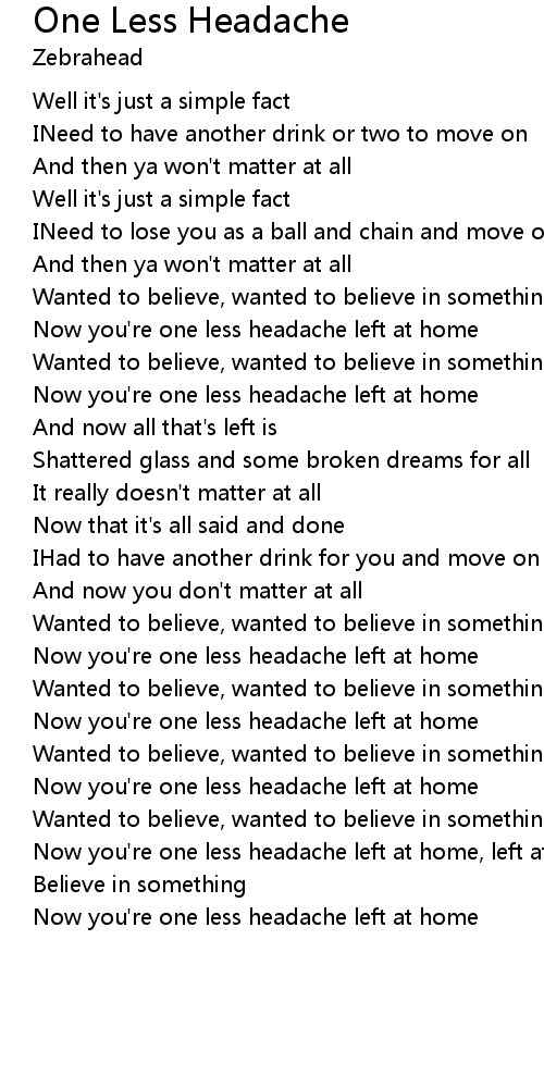 Now you're one less headache left at home, left at home |